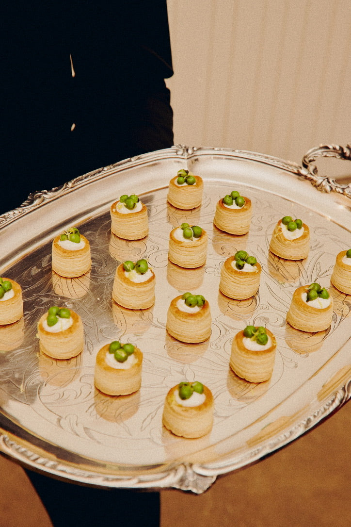 A thoughtfully curated menu featuring elegant passed bites, anchored by CYK's signature caviar service paired with bespoke cocktails-each element designed to complement the refined ambiance of Casa Valle. Each presentation detail was highly considered, with custom-designed food trays echoing the space's aesthetic.