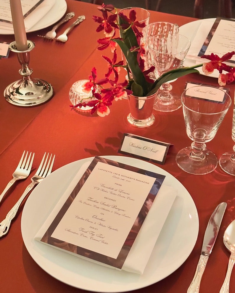 An elegant evening celebrating Lafayette 148's support of the Martha Madigan Foundation. Designed and executed by CYK, the event drew inspiration from Martha Madigan's signature photography techniques, which often incorporated florals and organic elements-an artistic vision beautifully reflected in Lafayette 148's capsule collection. This influence extended into the event design, where dramatic arrangements of aubergine Calla lilies echoed her aesthetic, seamlessly intertwining with a bespoke caviar kilo tin to create a refined, immersive setting.