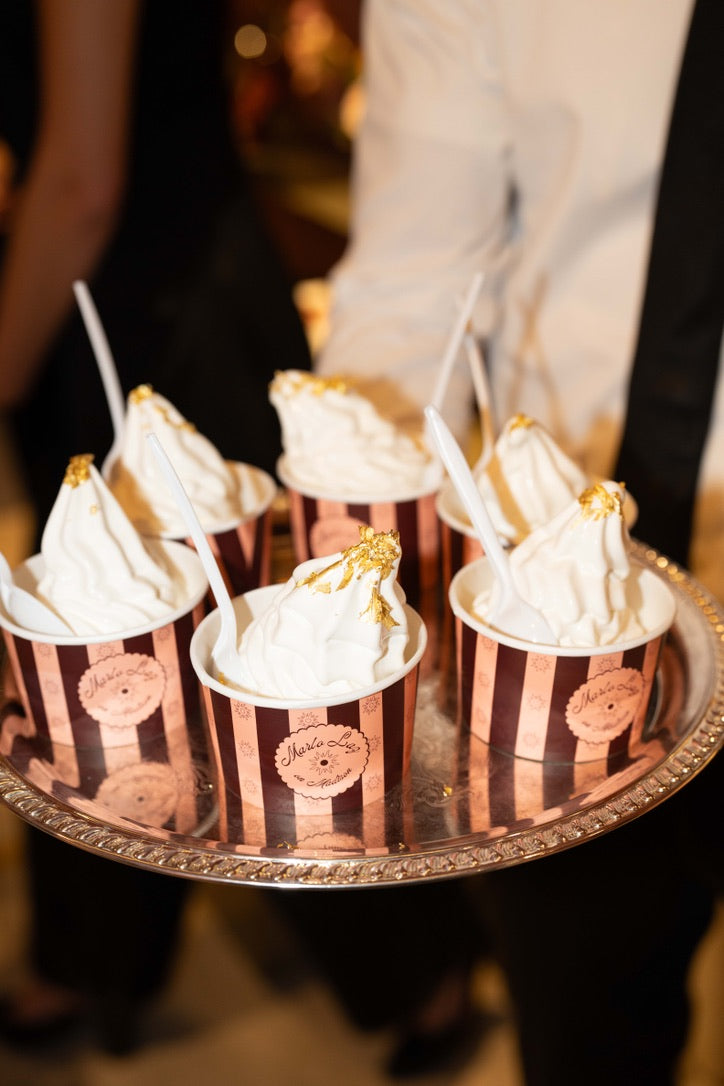 An immersive evening of bespoke luxury, celebrating the grand opening of Marlo Laz on Madison Avenue. Thoughtfully designed custom-branded elements brought the brand's vision to life, from a signature caviar cart serving CYK's finest selections to an elegant martini bar. Decadent soft-serve was presented in Marlo Laz-branded cups with gold leaf embellishments, reinforcing the brand's identity in every detail. A seamless fusion of artistry and indulgence, the event offered guests a truly immersive experience, where every touchpoint reflected Marlo Laz's distinctive aesthetic.