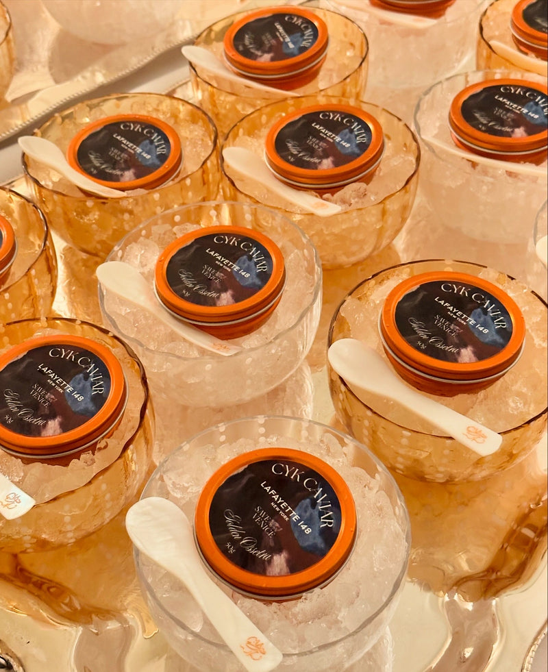 A seamless collaboration bringing CYK's bespoke caviar gifting to Over The Moon, the premier destination for elevated registry essentials. This partnership offers beautifully branded OTM x CYK caviar tins alongside fully bespoke, customizable options as well-transforming caviar into the ultimate luxury gifting for discerning hosts and celebratory occasions.