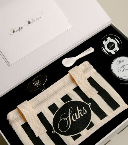 A luxurious, custom-designed gift for Saks Fifth Avenue’s top clients and influencers. Featuring bespoke Golden Ossetra caviar tins, elegantly paired with crème fraîche and premium potato chips, each package was wrapped in Saks’ signature black and white stripes—an exquisite fusion of indulgence and iconic style.