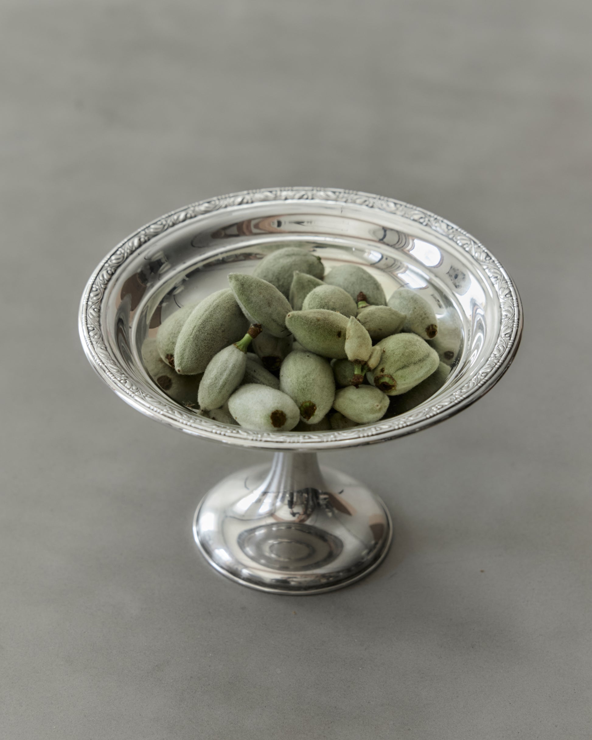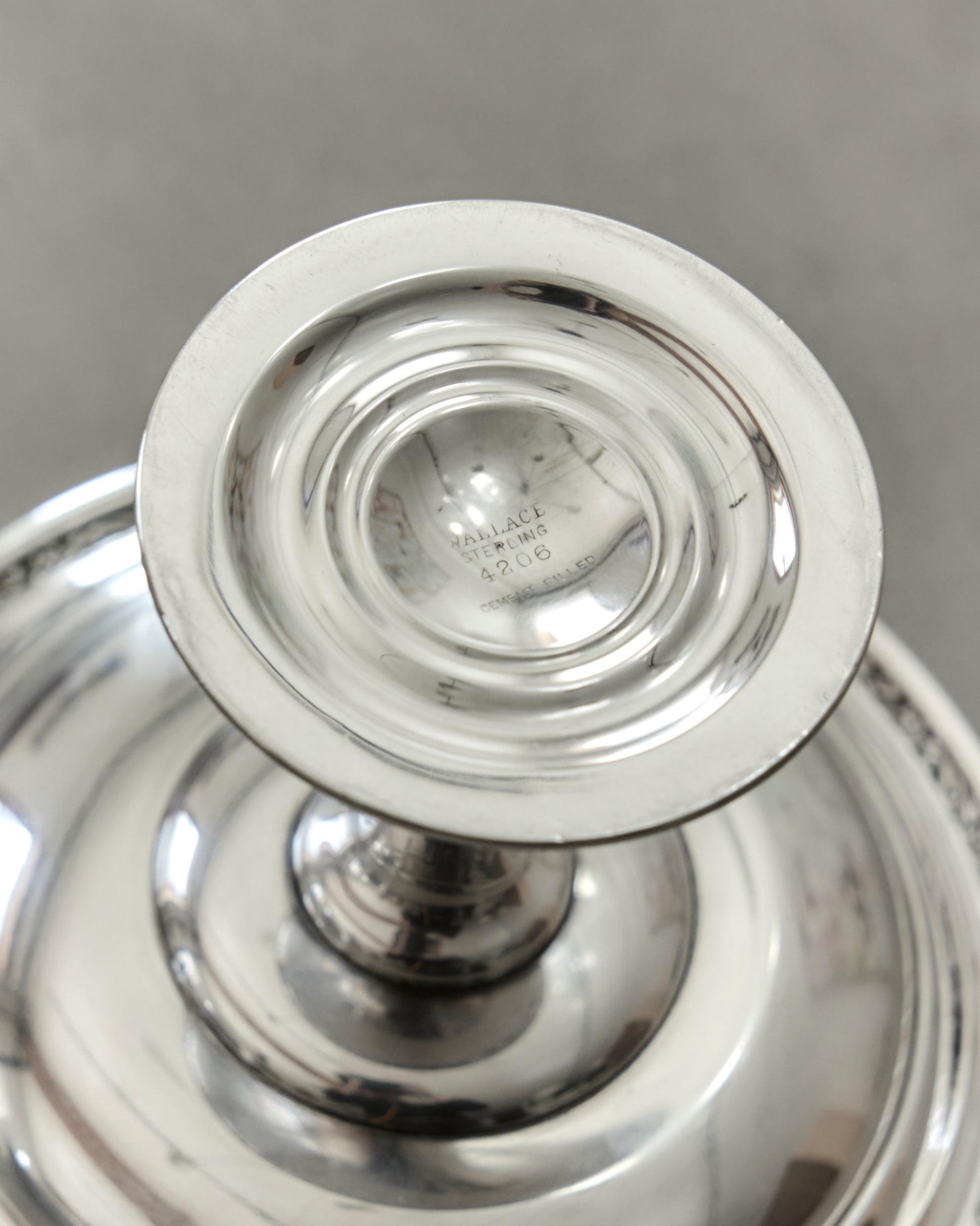 Wallace Sterling silver pedestal candy dish, pattern 4206. Flared bowl with decorative rim and solid base. Marked: WALLACE STERLING 4206.