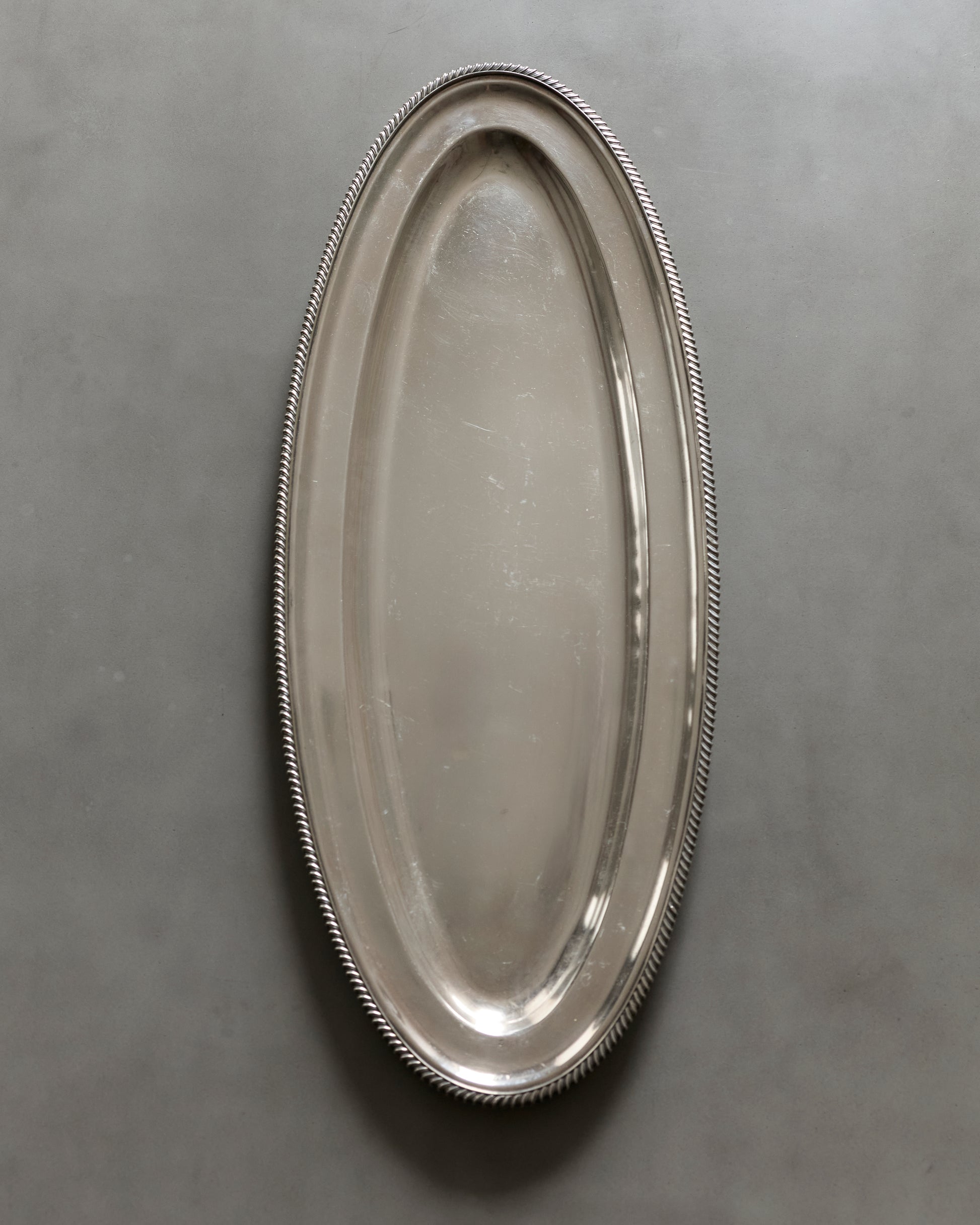 This is a vintage Mappin & Webb silver-plated serving tray featuring a distinctive pierced "gallery" rim and engraved surface patterns, a design often found in late 19th or early 20th-century British tableware. Originally used as a mazarine (fish platter), it now can be used as a decorative serving piece.