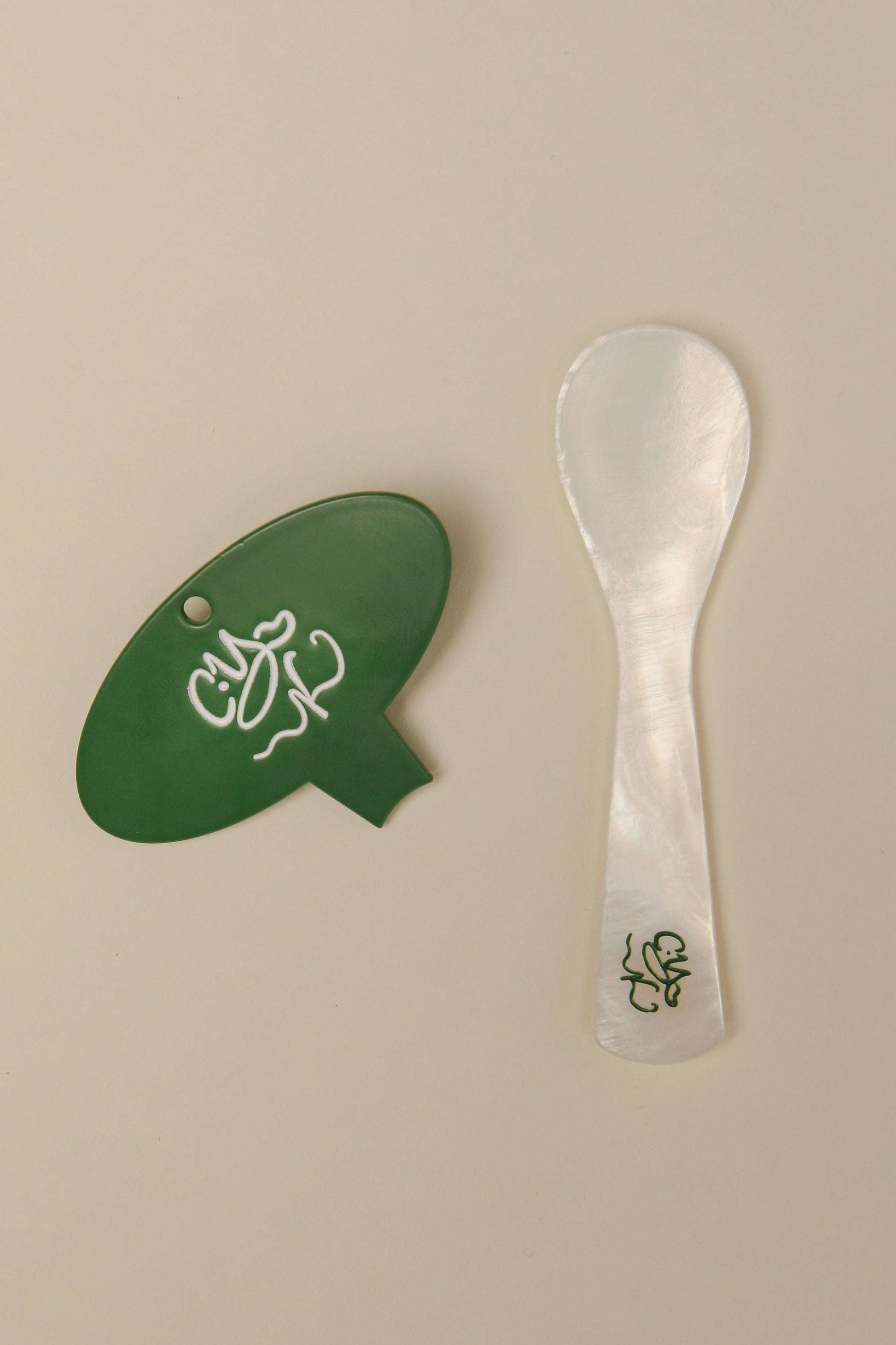 The CYK Classic Green Caviar Key, used to open your caviar tin by inserting and twisting to pop open!