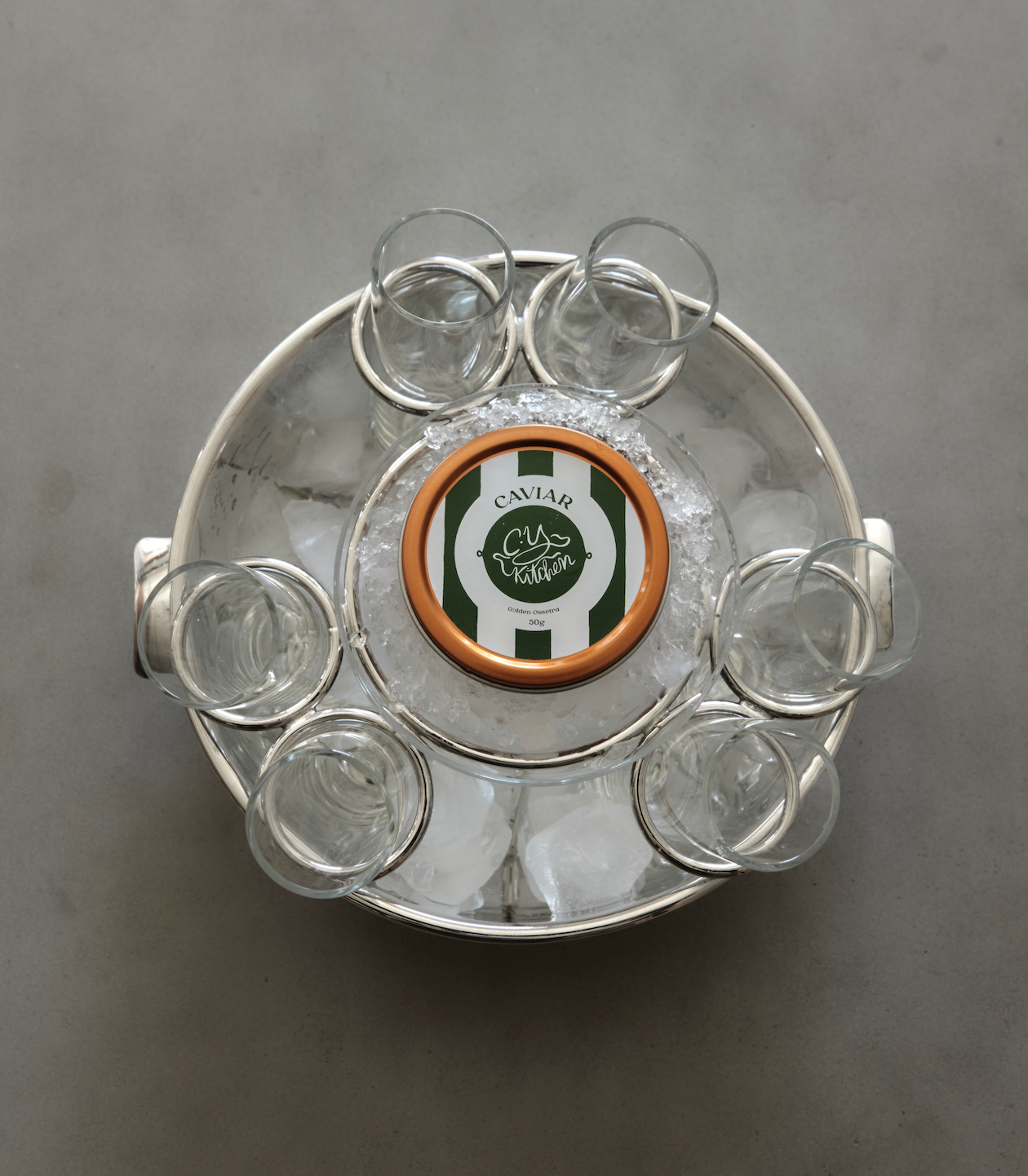 Vodka Shot and Caviar bowl designed to hold a 50g tin of CYK Golden Ossetra! Fill with crushed ice, add chilled vodka shots, and let the celebration begin...